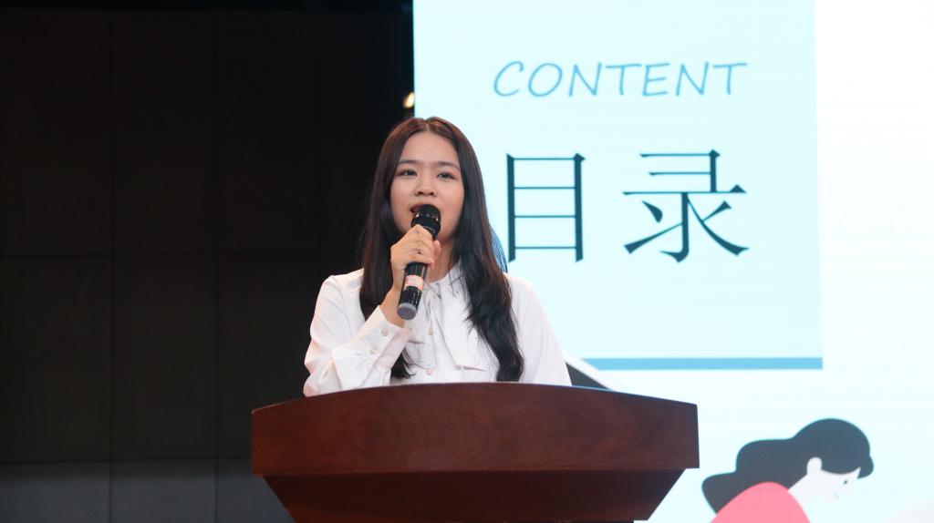 吴文倩从“个人成长”“社会实践”“展望未来”三个方面分享了自己的成长经历。从作为一名公费师范生初入校园,到以教师的身份下乡实践,这是她在大学之中的蜕变。她表示,“今后会把爱倾注在教育事业中,用真情打动员工,诚心感化员工,心灵倾听员工,汗水浇灌员工。”