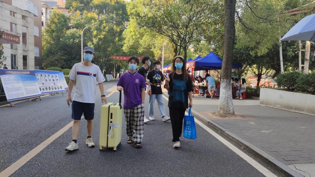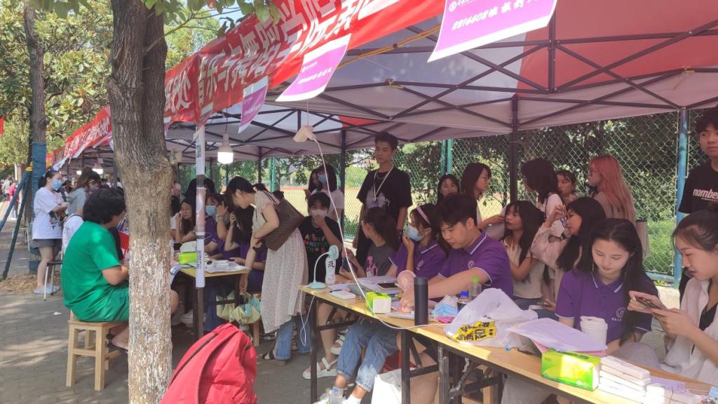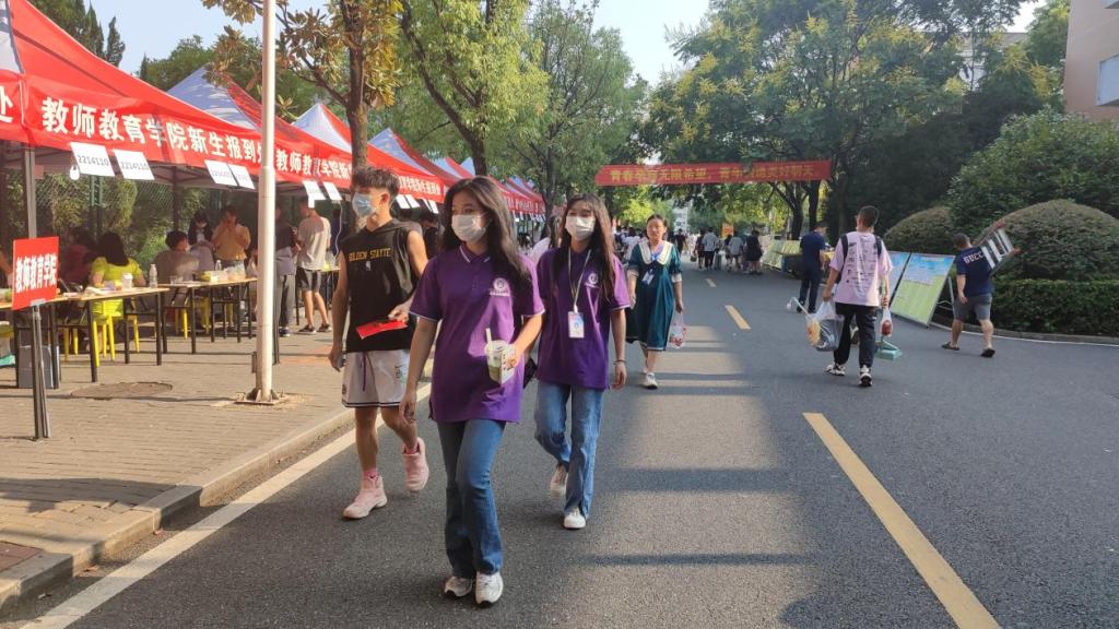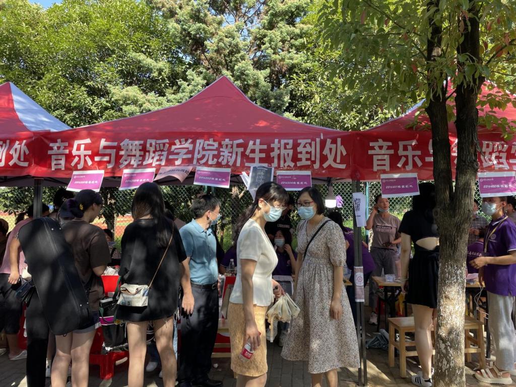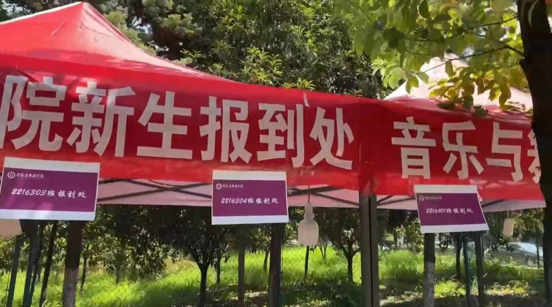 迎新工作人员静候新生的到来