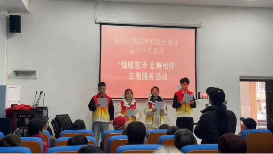 “五星红旗迎风飘扬,胜利歌声多么响亮;歌唱我们亲爱的祖国,从今走向繁荣富强……”11月26日上午,慧泽园小区老年活动中心传来高亢嘹亮的歌声,这是太阳成集团tyc33455cc联合离退休工作处开展“情暖慧泽音舞相伴”志愿服务活动。羊舞岭社区党总支负责人、公司部分离退休老同志、太阳成集团tyc33455cc师生志愿者参加了此次活动。