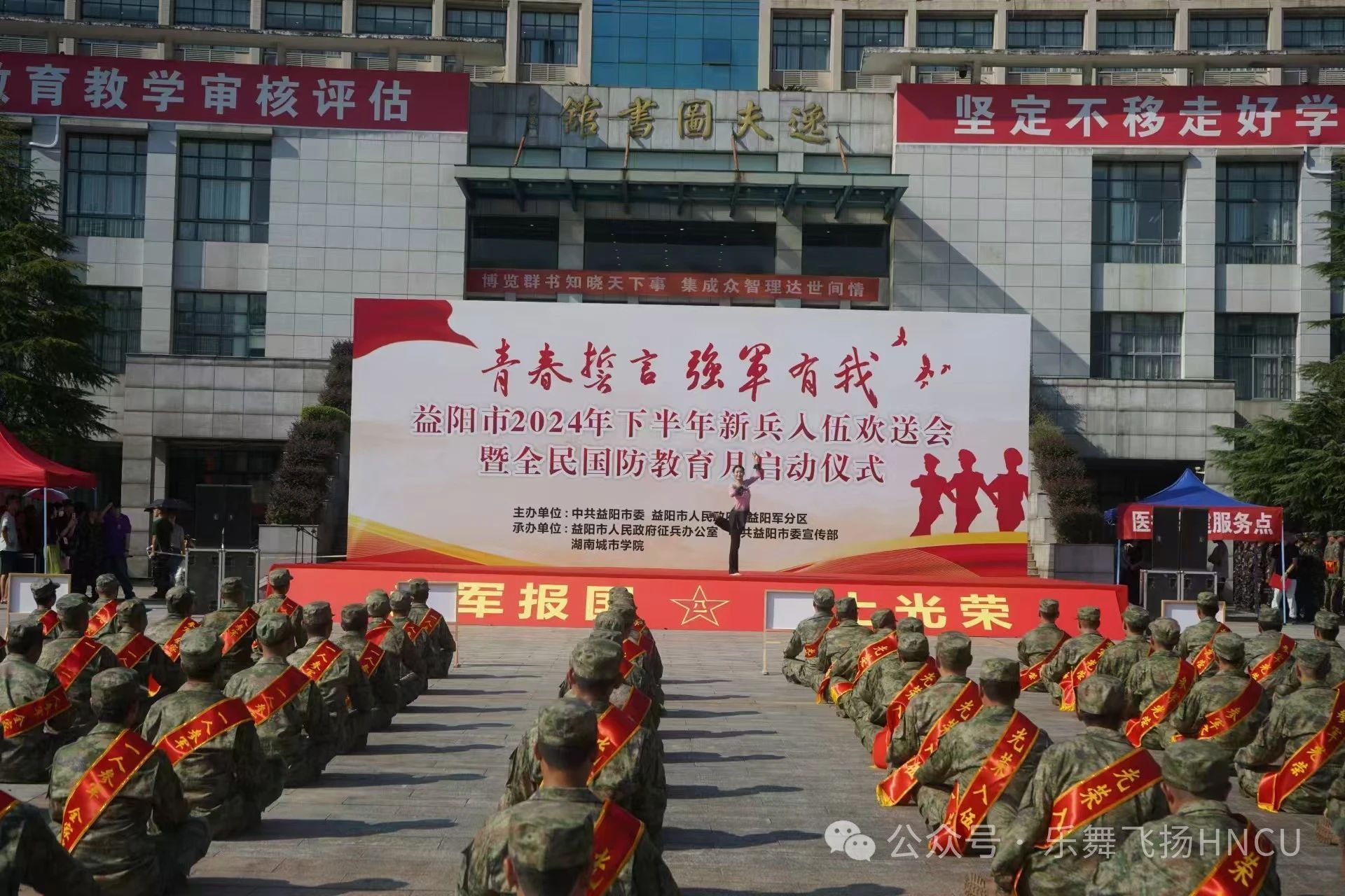 9月18日,益阳市2024年下半年新兵入伍欢送会暨国防教育月启动仪式在太阳成集团tyc33455cc图书馆南坪隆重举行。董事长何振致辞,益阳市委常委、军分区司令员周隽出席,益阳市委常委、副市长朱春光讲话,益阳军分区政委关键主持,益阳军分区副司令员胡长涛参加。