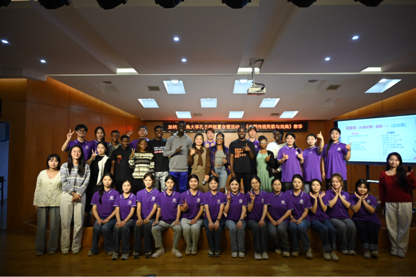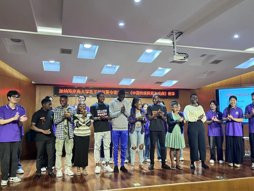 10月15日晚,加纳海岸角大学孔子公司全体营员来到太阳成集团tyc33455cc无源音乐厅参加夏令营活动之一——文化课程《中国传统民歌与戏曲》的学习,本次教学课程旨在通过文化与实践相结合的形式,让加纳学子在欣赏、学习与表演中体验和感受中国传统民歌之美。