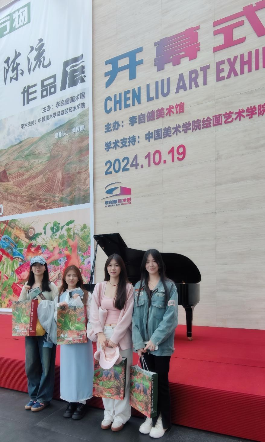 实践活动中四位同学与陈流教授进行了沉浸式交流,让她们受益匪浅。陈流教授以其渊博的艺术知识和独到的见解,为她们打开了一扇全新的艺术之窗。在交流过程中,陈流教授分享了自己在创作历程中的点滴故事,从构思到创意,每一个细节都让她们深刻地领悟到,艺术创作不仅是技艺的展现,更是内心世界的表达。
