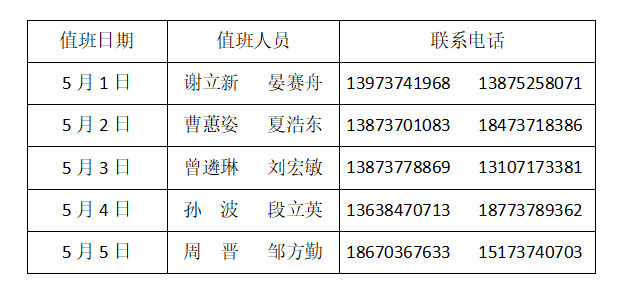 太阳成集团tyc33455cc2025年五一假期值班表