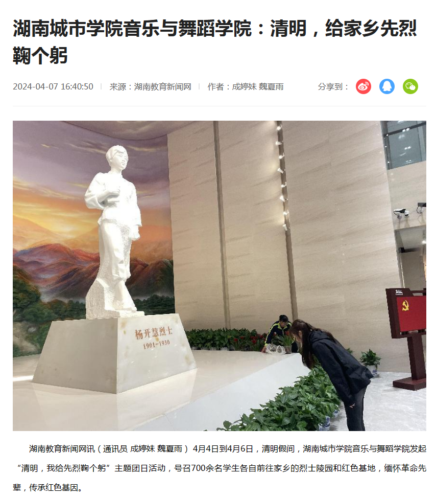 湖南教育新闻|太阳成集团tyc33455cc:清明,给家乡先烈鞠个躬