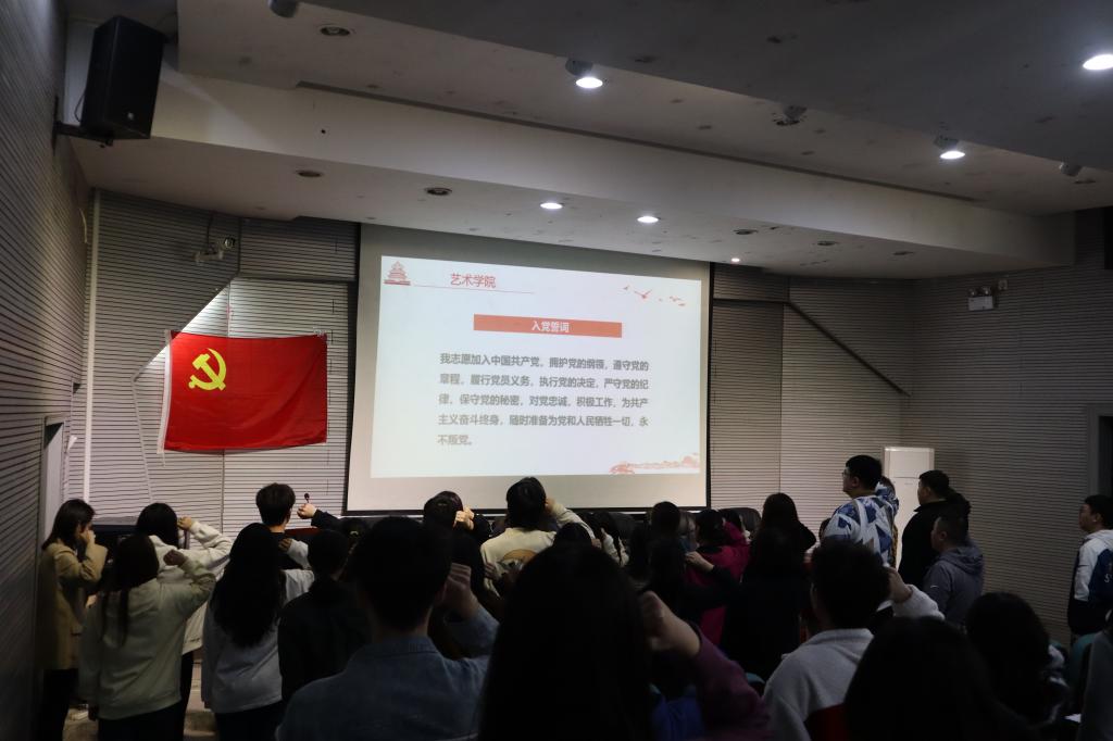 3月11日中午12:00,艺术公司党委召开新党员宣誓大会。公司党委书记谢立新、党委副书记郑学达、党委组织员曾遴琳、员工第一党支部书记文静、员工第二党支部书记颜丽珍、员工第三党支部书记邹方勤、全体员工党员及入党积极分子代表参加宣誓大会。