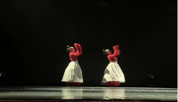 民族双人舞作品《老雁》表演形式简朴,人物形象多面,观众尽可以通过演员的肢体语言仿佛和蒙古族老人合为一人,感同身受,忘记了仅是欣赏好看的动作,却被动作引领到更深的内心世界,心理情绪的层面。“老骥伏枥,志在千里”,我老了,可我心还未老,谢谢这只大雁,我又重生了,即使我已不再年轻,即使一切都无法回去,即使我将要离开……除了蒙古族作品,随后又为大家献上了彝族三人舞《源》《小伙四弦马樱花》、羌族女子群舞《云上》、藏族群舞《转山》等民族民间舞蹈,给人以视觉盛宴。