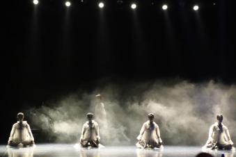 陆地与大海间有一层亲密的互动关系,大海能代表这座城市在发展中崭新的现代精神、气质和文化。舞蹈以浪潮的形象和女子的优雅作为创作动机的切入点,用曼妙的身姿和空灵的意境向观众描绘一幅唯美的画面,试图为观众带来美的视觉享受。女子群舞《潮》节选自深圳歌剧舞剧院大型原创舞蹈诗《城》第二篇章《那片海》,由吕梓民、陈伟科老师编导。作品以特有的表现手法,向市民呈现出了当代舞蹈艺术的魅力,感染了在场的每一个人。