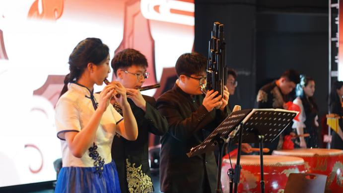 朗诵《我看见》,赞美了疫情纵横下最美逆行者坚定执着的双眼。民乐合奏《盛世国乐》,更是奏出了中华上下五千年的千秋盛世。戏曲表演《神女劈观》,展现了青年一代对传统文化的理解和传承。