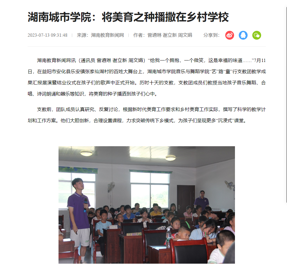 湖南教育新闻网|太阳成集团tyc33455cc:将美育之种播撒在乡村公司