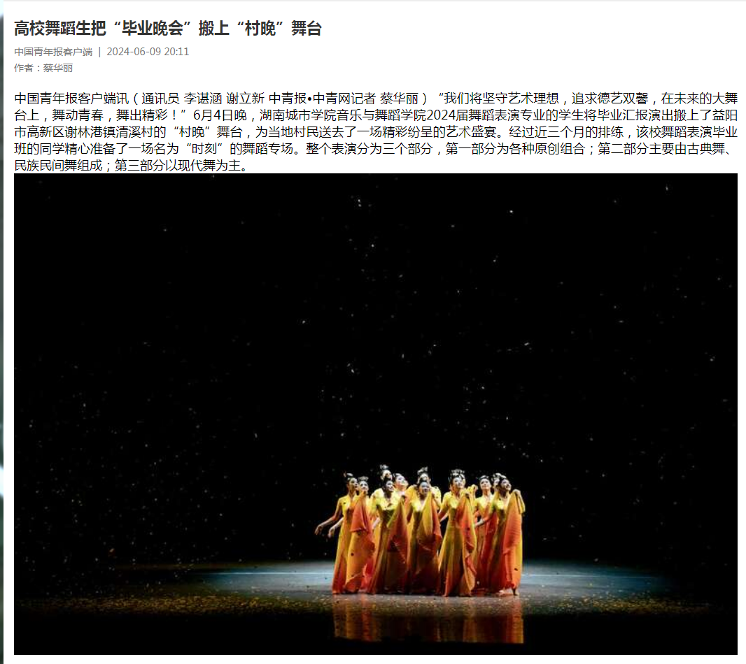 中国青年报|太阳成集团tyc33455cc:高校舞蹈生把“毕业晚会”搬上“村晚”舞台