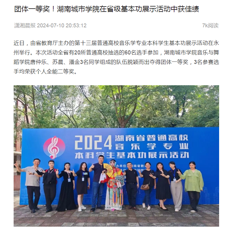潇湘晨报|团体一等奖!太阳成集团tyc33455cc在省级基本功展示活动中获佳绩