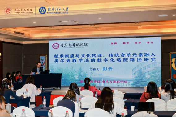 在主旨报告环节,国内音乐教育界知名学者围绕“‘世界百年未有之大变局’下的中国公司音乐教育”“美育高质量发展与音乐团队建设”“中华母语音乐文化教育话语体系构建”等关键议题发表真知灼见,提出了一系列具有引领性的学术观点。公司彭云老师认真聆听报告,结合自身研究方向与公司音乐教育专业特色,在交流环节就“技术赋能及文化转译:传统音乐元素融入奥尔夫教学法的数字化适配路径研究”提出思考,引发在场专家共鸣。
