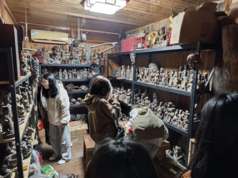 26日13时,全体师生到达并参观了李翔老师创建的梅山书院,书院以古建筑风格为主,它不仅是梅山文化的展示窗口,更是此行各位研究生同学开启音乐人类学研究的“第一课堂”。院内设有研讨会议室,文物收藏室等,其中文物收藏室内存有文物百余件,是作为梅山地区音乐人类学研究不可或缺的重要组成部分。