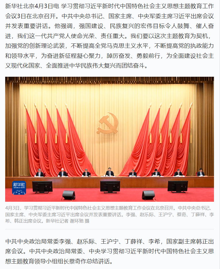 学习贯彻习近平新时代中国特色社会主义思想主题教育工作会议在京召开 习近平发表重要讲话强调