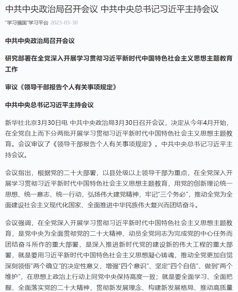 中共中央政治局召开会议 中共中央总书记习近平主持会议