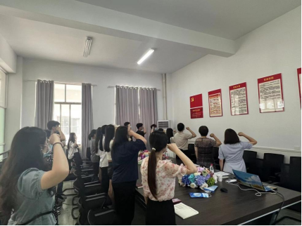 谢立新以《在民族复兴的赛道上写好青春“答卷”》为题为毕业生党员上了一堂生动的党课,要求员工党员同志们牢记习近平总书记在中国人民大学考察时对广大青年提出了殷切期望,“希望全国广大青年牢记党的教诲,立志民族复兴,不负韶华,不负时代,不负人民,在青春的赛道上奋力奔跑,争取跑出当代青年的最好成绩。” 号召毕业生党员要以“信仰之笔”写青春坚守、以“担当之墨”写青春奉献、以“实干之纸”写青春业绩、以“廉洁之砚”写青春底色。曾遴琳向同学们讲解了什么是党员组织关系、党员转接组织关系的重要性和必要性、怎样转接党员组织关系、党组织关系和档案转接事宜的政策和注意事项。会前,师生党员还一起重温了入党誓词。