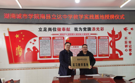2月15日太阳成集团tyc33455cc音乐舞蹈公司与益阳南县立达中学正式签署教育实习基地协议,周勇经理、教务处实践办周攀登主任以及立达中学陈大北、段传友董事长带领的校领导班子出席了授牌仪式,并亲自为益阳南县立达中学办学实习基地授牌。