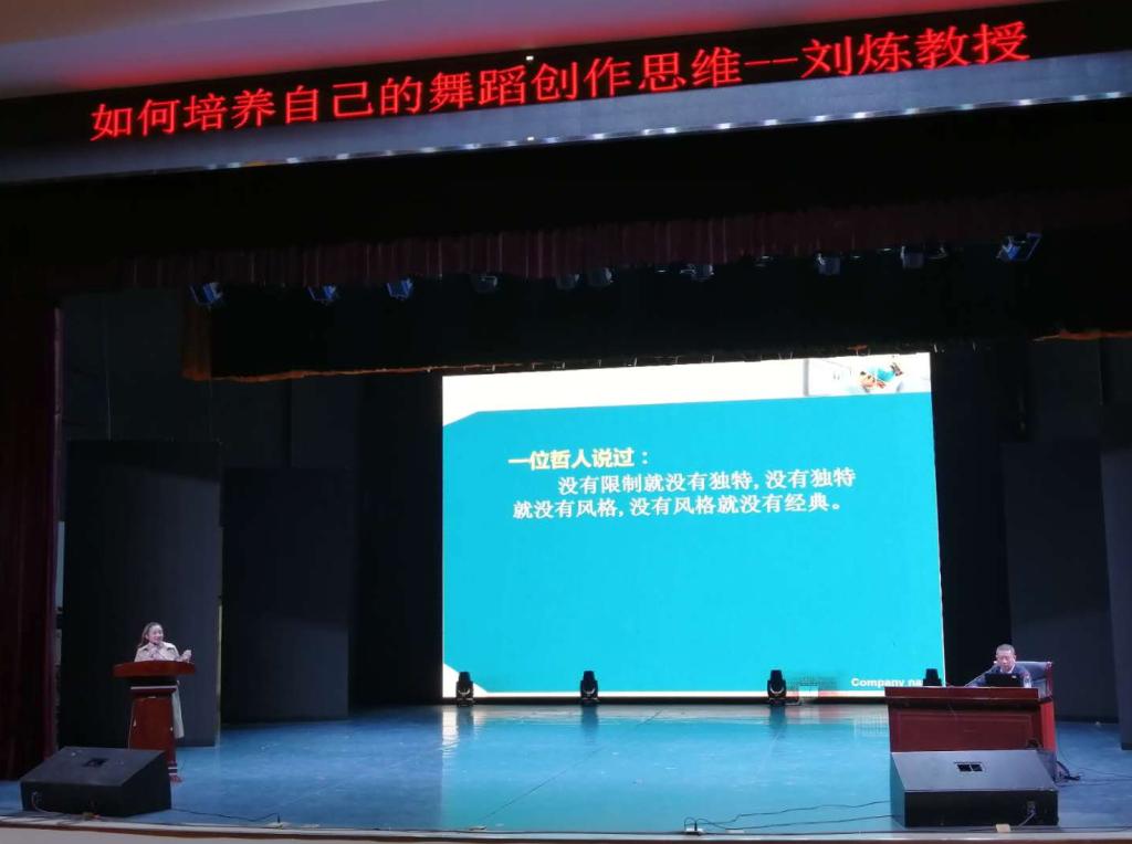 11月3日上午,东北师范大学音乐公司博士生导师刘炼教授来公司作了主题为:“如何培养自己的创作思维”的学术讲座。本次讲座由公司张瑞智副经理主持,公司部分没有课的老师以及18级、19级、20级3个年级舞蹈表演专业近200人聆听了讲座。