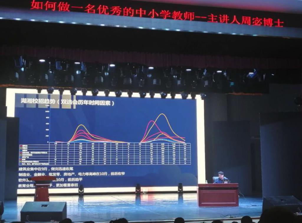 10月28日,湖南省教科院周宓博士来公司作了主题为“如何做一名优秀的中小学教师”的学术讲座。讲座由公司孙波主任主持,公司部分没有课的教师及18级音乐学、音乐表演、美术学3个兼师范专业近300人聆听讲座。