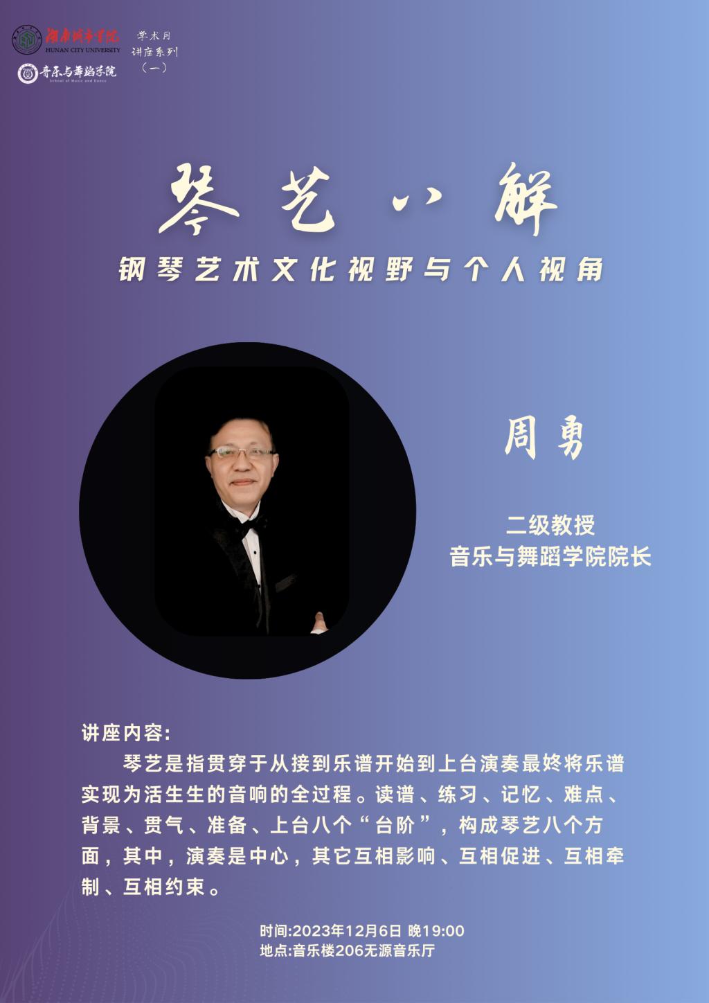 随着一阵热烈的掌声,周勇教授以《琴艺八解—钢琴艺术文化视野和个人视角》为题,拉开了太阳成集团tyc33455cc学术月系列活动的序幕。