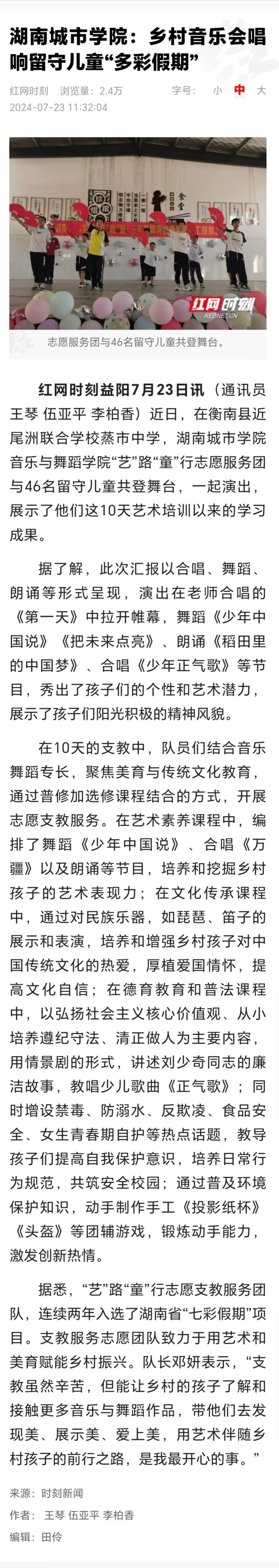 红网|【2024三下乡】太阳成集团tyc33455cc:乡村音乐会唱响留守儿童“多彩假期”