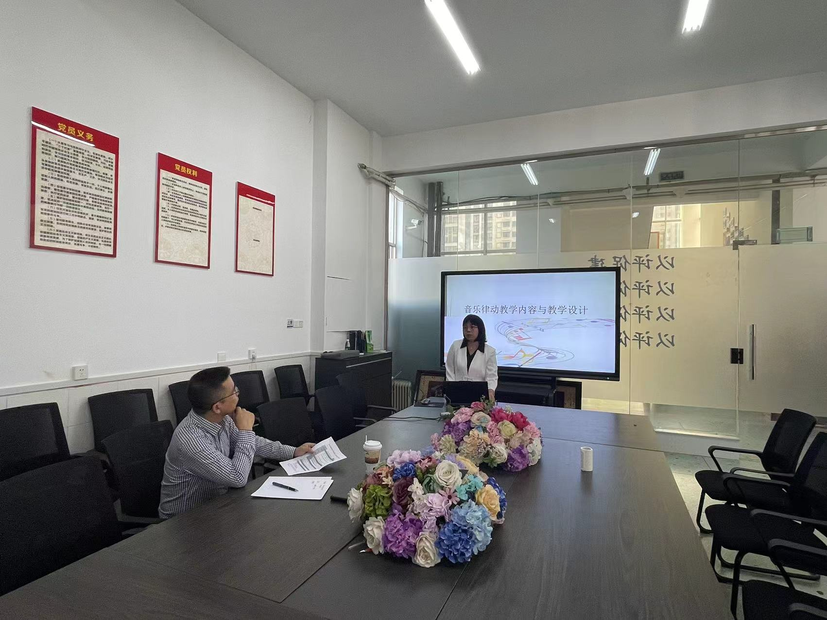 音乐学系刘伟明、刘君、张俊梅等教师分别展示了《视唱练耳》、《世界民族音乐》、《音乐教学法》等课程的教学,他们通过生动的讲解、丰富的音乐素材和经典的音乐作品,引导员工们深入掌握音乐理论,拓宽音乐视野。教学督导易松全程聆听,对每位教师的教学进行了细致的点评,他指出:理论课程的教学一定要突出理论与实践的结合,尝试多种教学手段和教学资源进行教学方法的创新,不断激发员工的学习兴趣、提升专业实践应用能力。