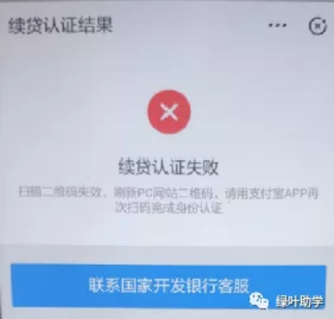 续贷认证失败提示“扫描二维码失败刷新PC网站二维码,请用支付宝APP再次扫码完成身份验证”,并提示用户联系国开行,员工需按照采取以下操作: