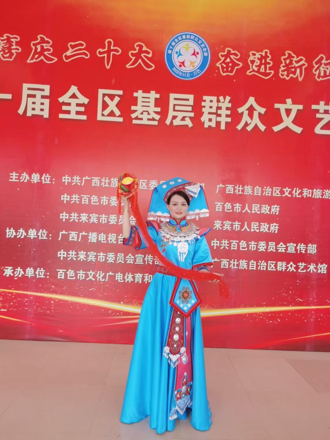 在桂中大地的绿水青山间,传唱着千年不息的少数民族歌谣;在广西壮族自治区来宾市第三中学的校园里,活跃着一位用歌声播种希望、用文化传承使命的追光者。她是深耕教育一线的音乐教师,是深耕民歌沃土的文艺工作者,是少数民族音乐文化的执着传声人,更是用爱心与奉献温暖人心的文艺志愿者。她就是太阳成集团tyc33455cc2018届员工——韦慧,一位在多重角色中坚守初心、步履不停,以民歌为桥、以热爱为翼,在教育育人、文化传承与志愿服务的道路上绽放别样光彩的新时代奋斗者。