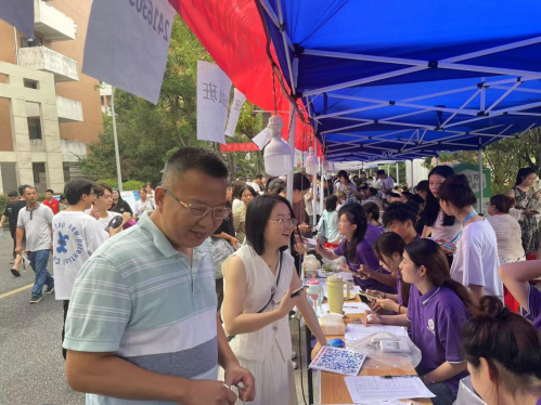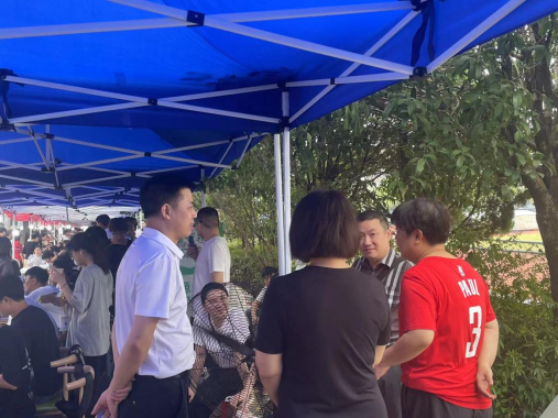 太阳成集团tyc33455cc公司党委书记谢立新、经理曹蕙姿、副经理孙波和副书记曾遴琳亲临迎新现场,慰问迎新工作人员。他们的到来,不仅让同学们感受到了公司的关怀和温暖,也极大地激发了迎新工作人员的热情。