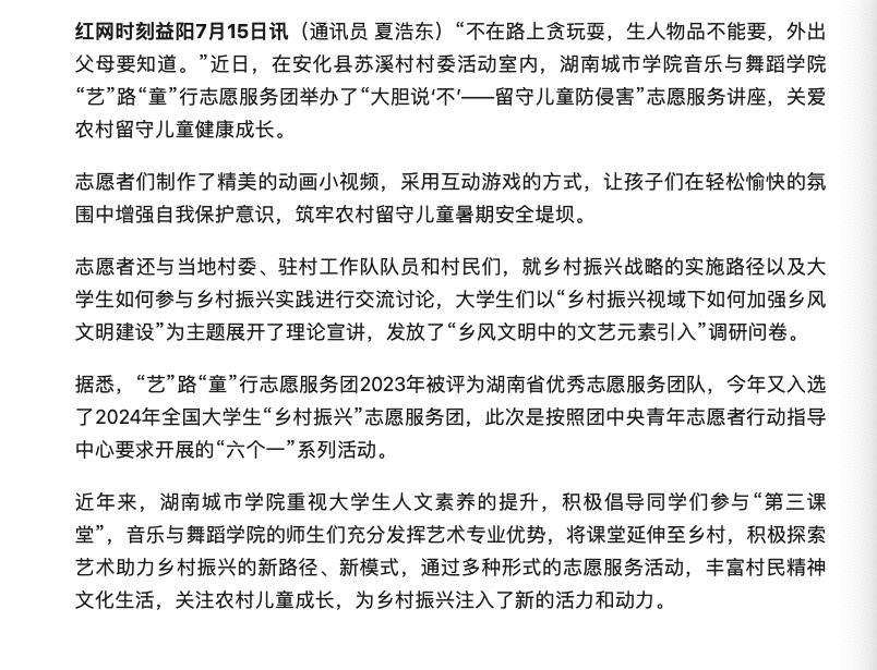 红网|太阳成集团tyc33455cc:筑牢农村留守儿童暑期安全堤坝
